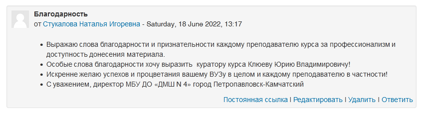Слушатели оставили только положительные отзывы о программе, отмечая высокий уровень организации учебного процесса и несомненную практическую значимость полученных знаний и навыков.