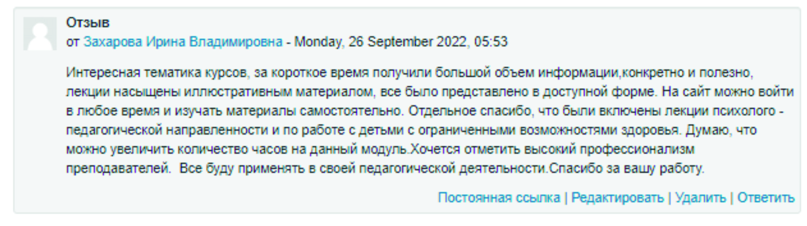 С 12 по 26 сентября 2022 года проходили курсы повышения квалификации по образовательной программе «Современные педагогические приемы и методы потенциала обучающихся по программам декоративно-прикладного творчества». Обучение проходили 39 слушателей из различных субъектов Российской Федерации. Это Архангельская, Воронежская, Ивановская, Калужская, Ленинградская, Московская, Нижегородская, Новосибирская, Омская, Ростовская, Самарская, Челябинская, Ярославская области, Кемеровская область – Кузбасс, республика Дагестан.
