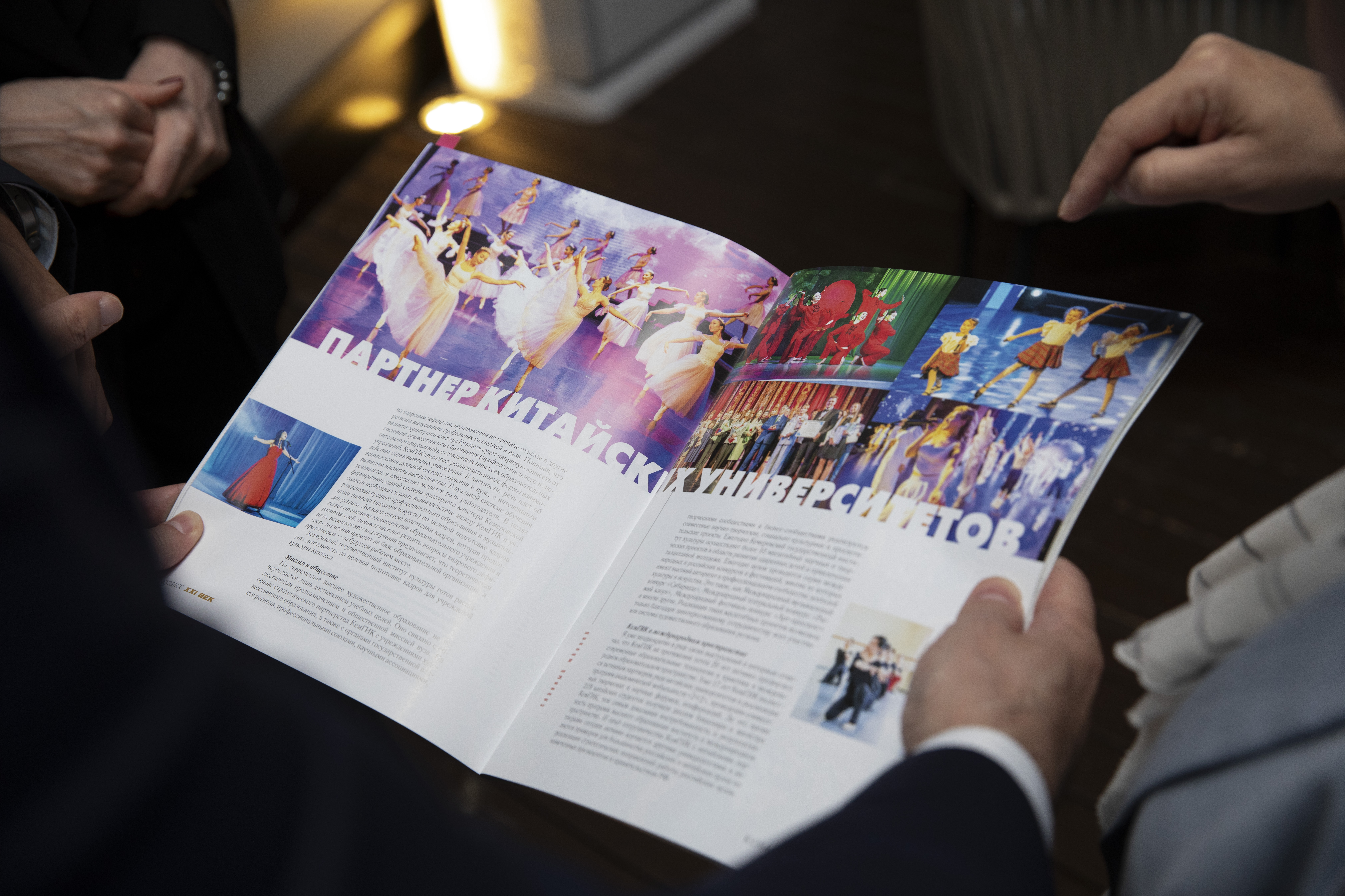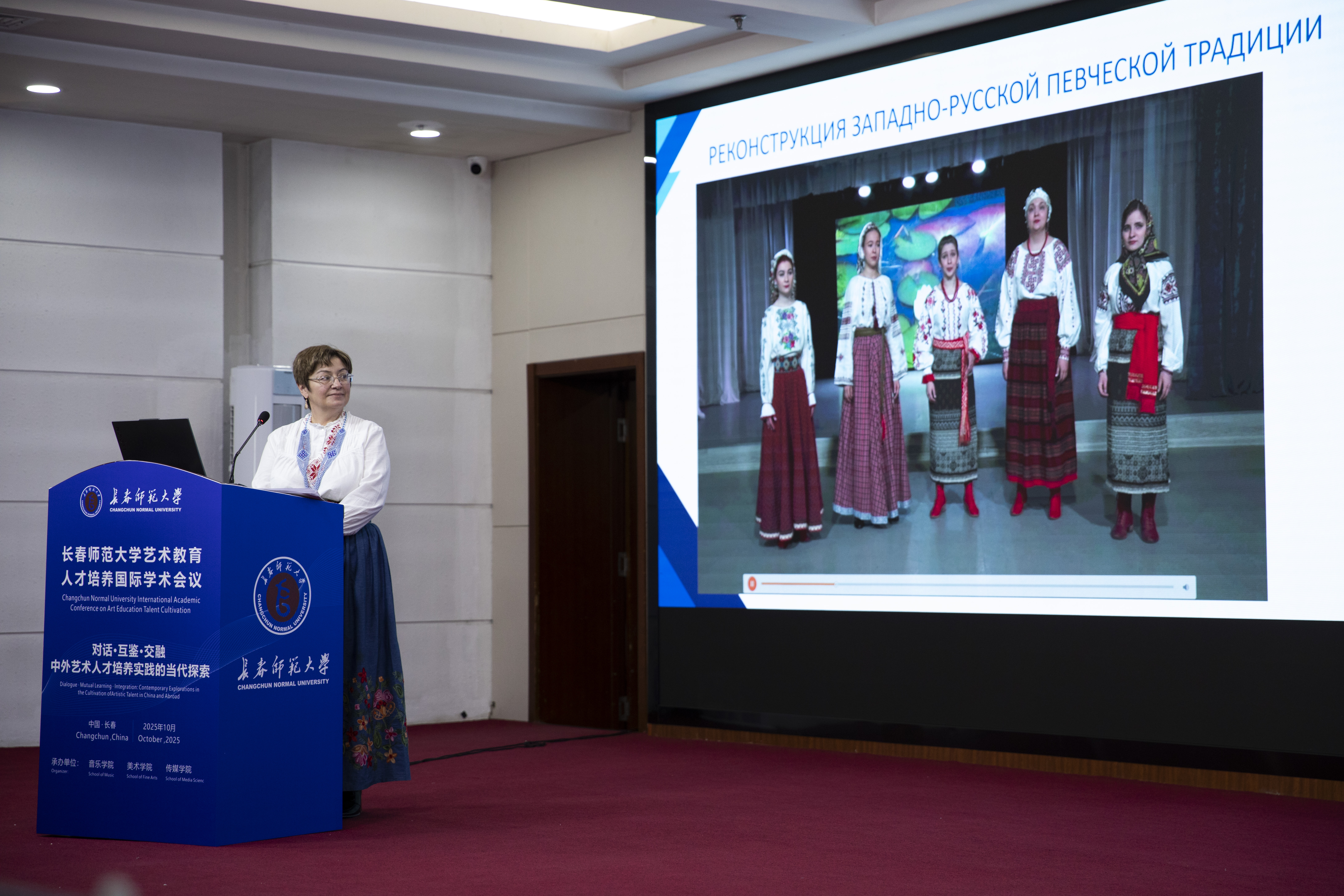Одним из важных событий поездки в Китай стала встреча в Чанчуньском педагогическом университете на Международной научной конференции по развитию талантов в рамках художественного образования. Делегация двух федеральных образовательных учреждений: Кемеровского государственного института культуры и Филиала ЦМШ-АИИ «Сибирский» – представила китайским партнерам российский опыт в области художественного образования и подготовки педагогических кадров. В рамках события для студенческой аудитории прошли мастер-классы профессора кафедры дизайна КемГИК Андрея Дрозда и старшего преподавателя кафедры фотовидеотворчества КемГИК Александра Никольского, который также представил свою персональную выставку фотографии. Зав. кафедрой народного хорового пения КемГИК Татьяна Котлярова выступила с докладом «Живая традиция: инновационные подходы в подготовке кадров для народного музыкального творчества». Ярким аккордом стало выступление Татьяны Анатольевны на заключительном концерте с лирической песней Кемеровской области «Во огороде верба рясна».