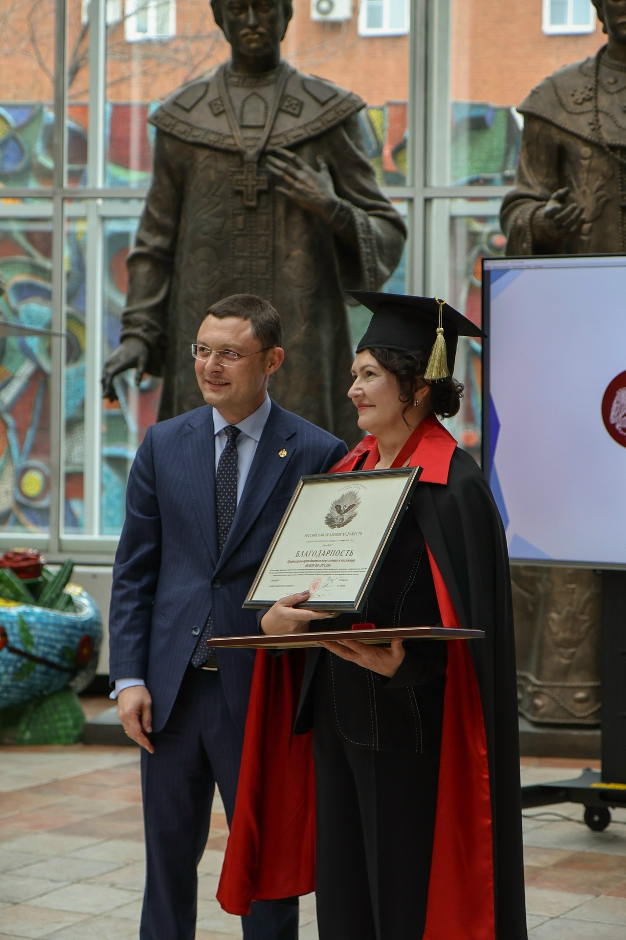 В рамках торжественной церемонии состоялось вручение высших академических наград. Ректору РГСАИ Елене Пахомовой были вручены регалии вновь избранного почётного члена Российской академии художеств. Эта высокая награда стала признанием значительного вклада Елены Алексеевны в развитие отечественного художественного образования России.
