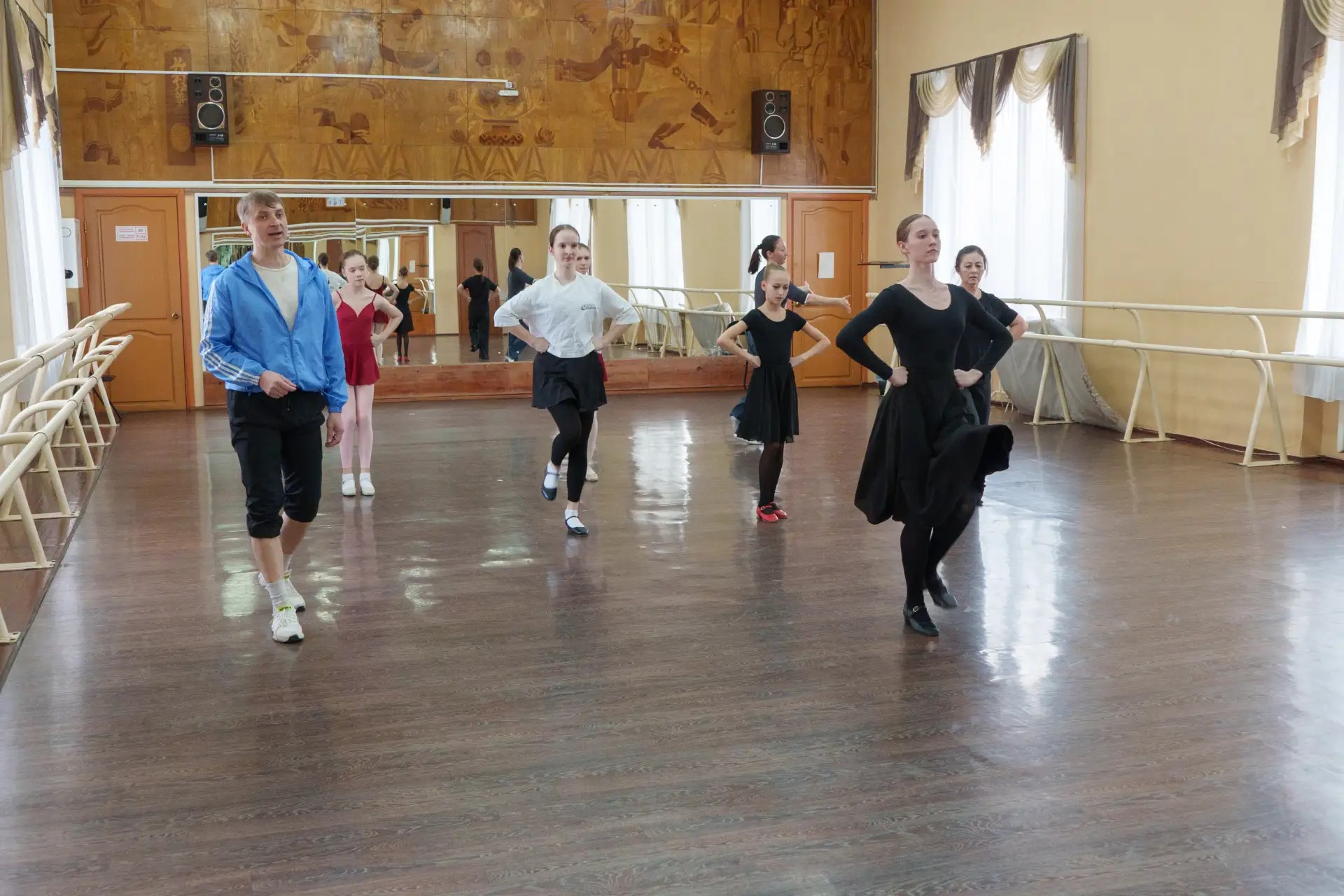 Далее для участников прошёл мастер-класс по народно-сценическому танцу «Техника трюков. Работа в парах» во Дворце культуры «Шахтёров». Его провёл Андрей Кириллов — старший преподаватель хореографических дисциплин Сибирского государственного института искусств имени Д. Хворостовского, член Международного союза хореографов. В рамках мастер-класса участники познакомились с техникой парных трюков в народно-сценическом танце, включая поддержки, вращения и прыжки с подбивкой. На практике отработали базовые элементы, страховку и синхронное взаимодействие в дуэте. Итогом стало освоение трюковых связок, готовых к включению в хореографические номера.
