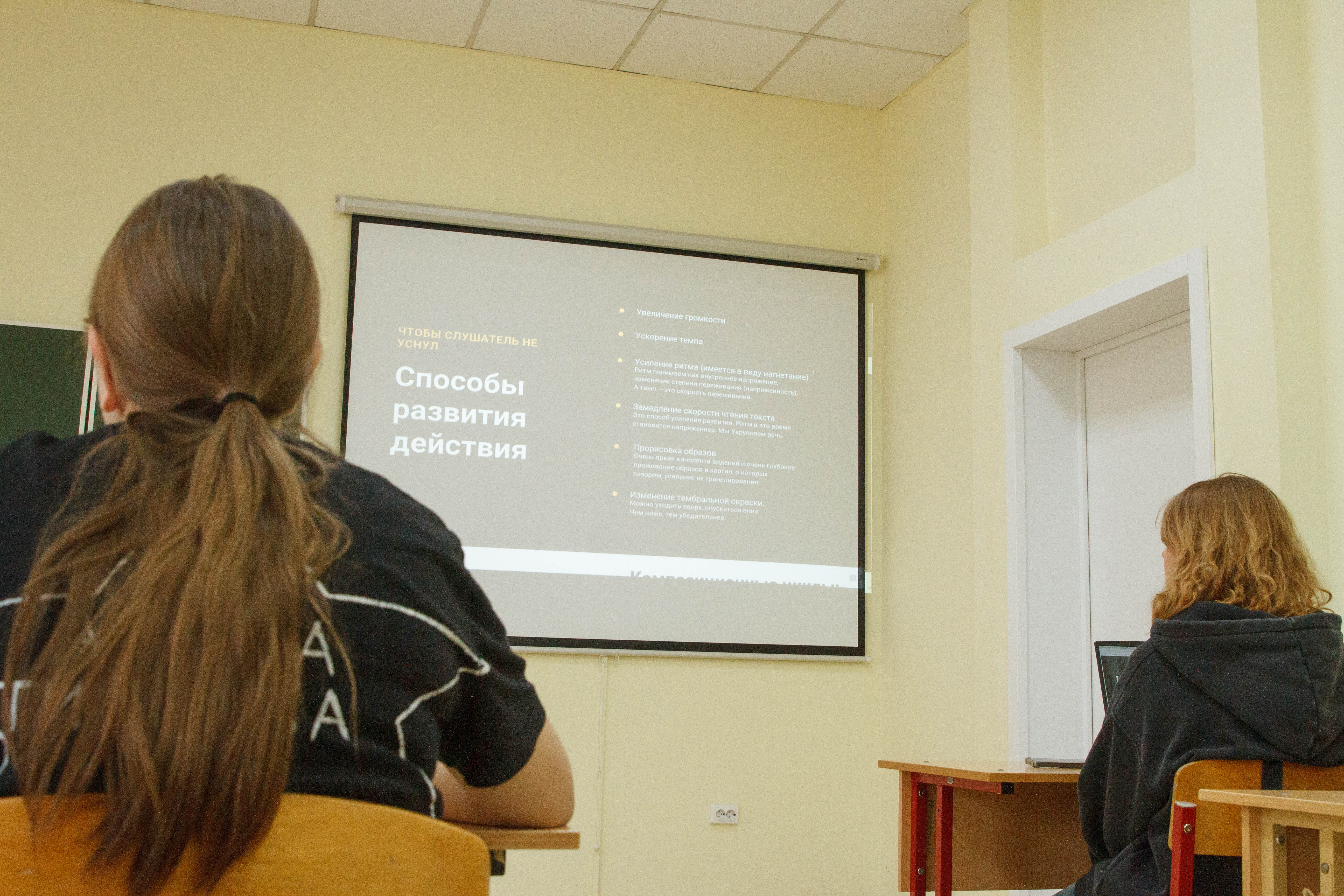 Участники вместе с экспертом разобрали конкретные примеры: сравнивали прочтения одной книги разными актёрами, искали удачные решения и ошибки в озвучке произведений — от классики до современных авторов. Студентов интересовали практические вопросы: как работать с голосом, избегать технических погрешностей и удерживать внимание аудитории на протяжении всей записи.