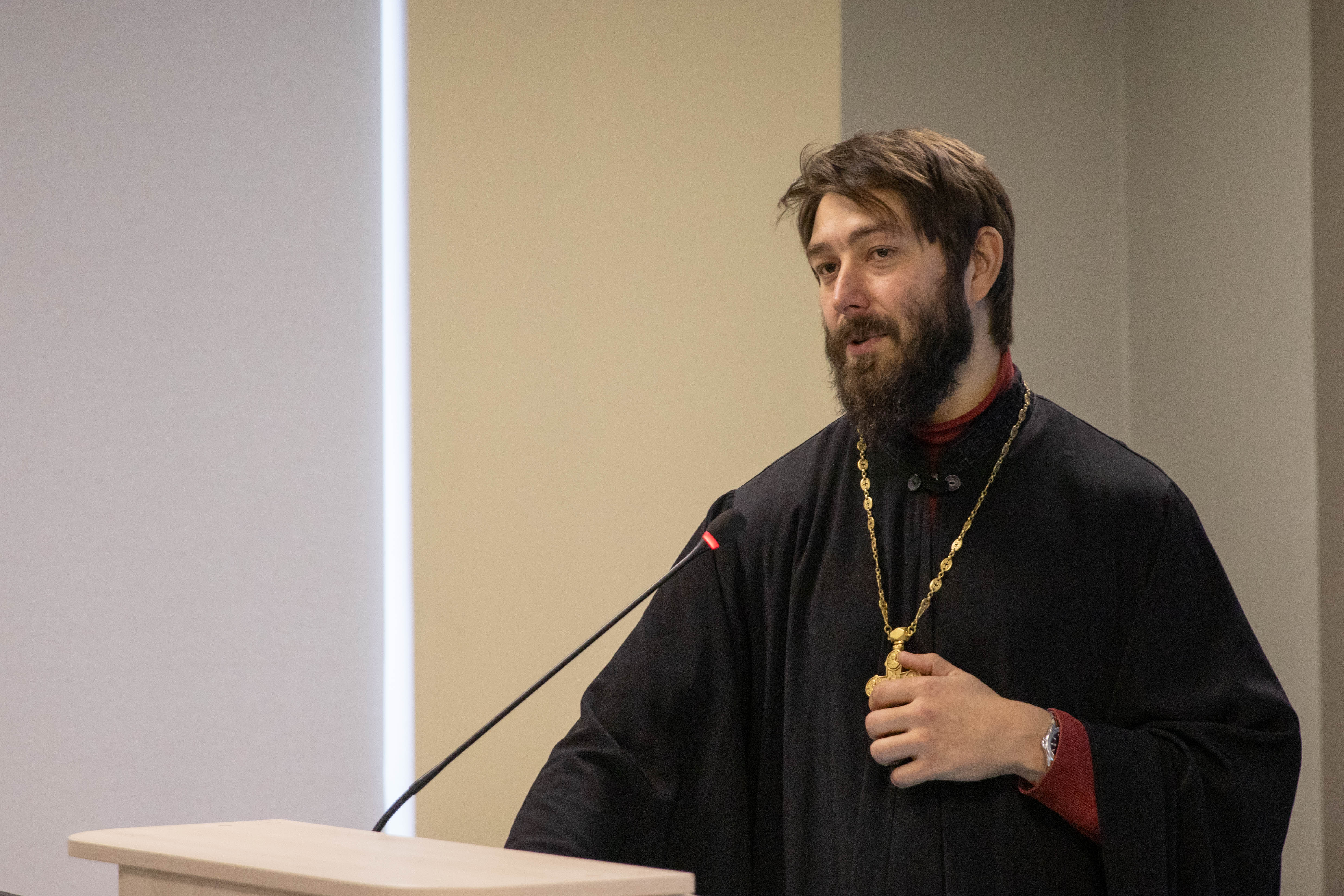 Отец Михаил Пышинский поделился опытом духовного становления православного священника, подчеркнул красоту разнообразия и уникальность общества, рассказал о функциях традиции, смысловой сущности православия, роли религии в поиске смысла жизни, сущности смирения, важности мира и целостности личности.