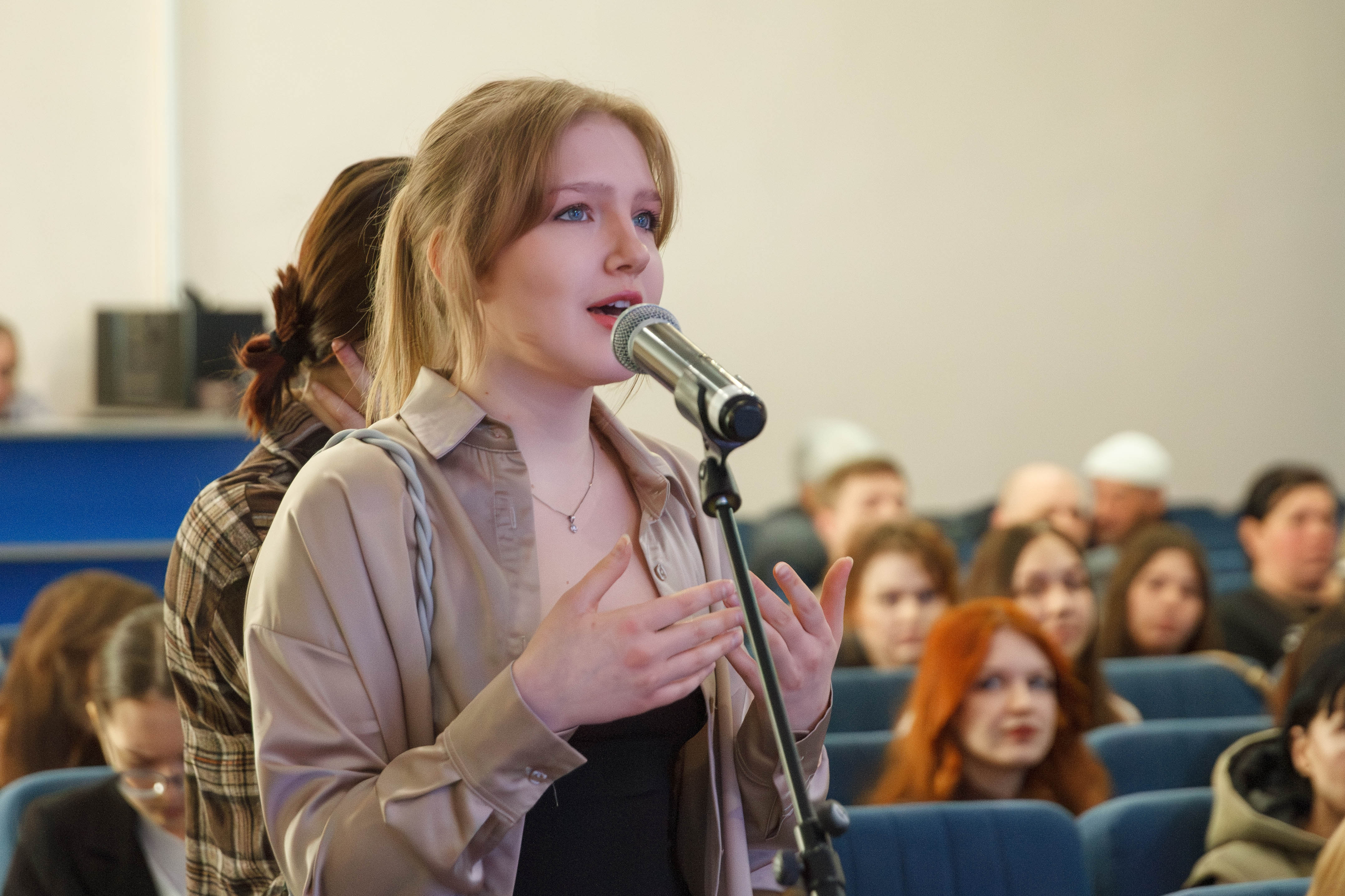 Разговор получился откровенным и охватил как философские, так и прикладные аспекты профессии. Будущих режиссёров волновало, как работать с историческими и патриотическими темами, избегая штампов и фальши. Студенты искали ответы на вопросы о грани между зрелищностью и смысловым наполнением: допустимо ли жертвовать содержанием ради эффектной картинки. Отдельный блок тем касался современных вызовов: использования искусственного интеллекта как технического помощника, новых веяний в социальных сетях и умения оперативно реагировать в условиях жёстких дедлайнов. Говорили и о человеческих аспектах ремесла: профессиональной деформации, синдроме самозванца, первых шагах после вуза и главном рецепте успеха.