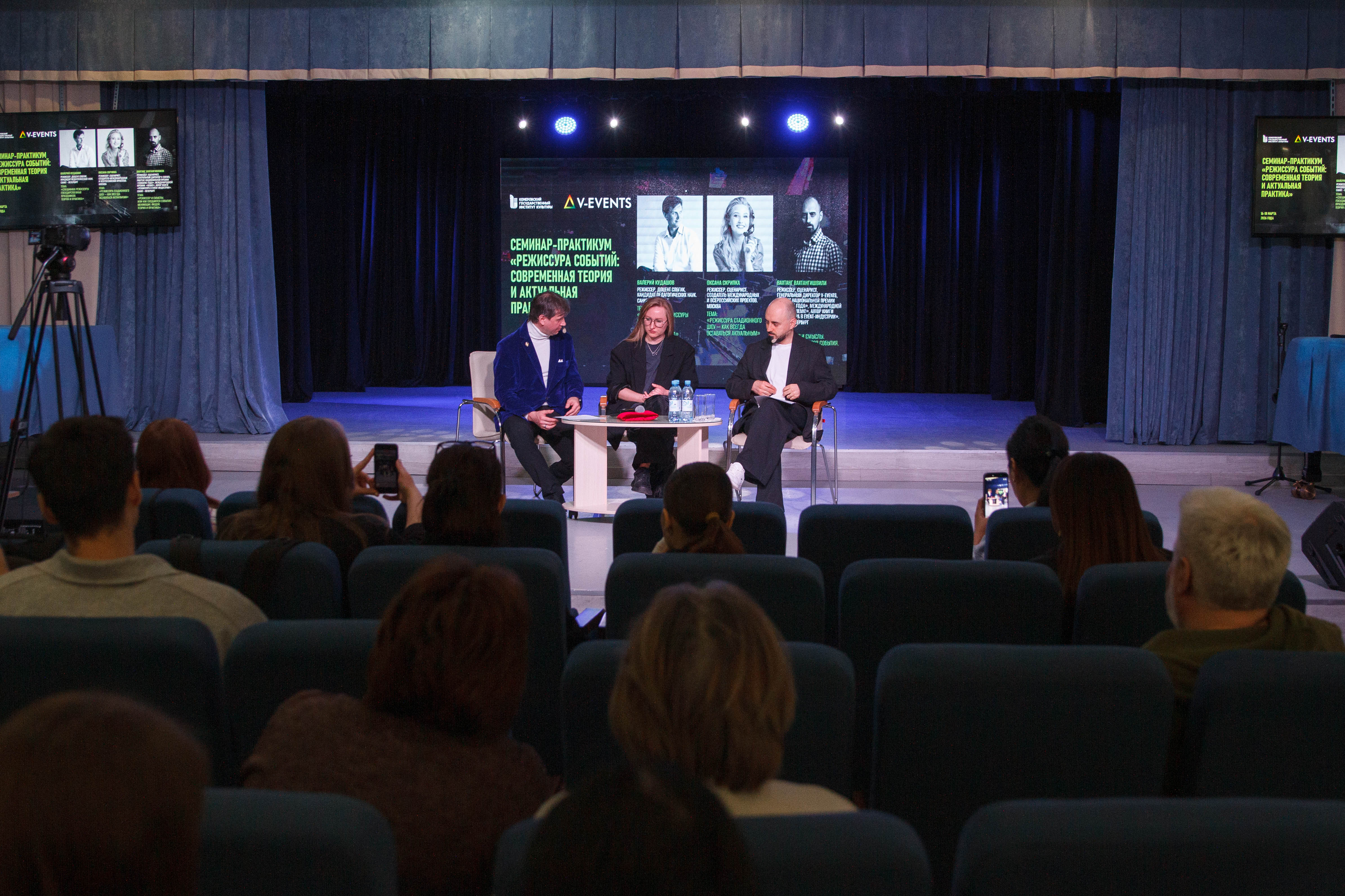 17 марта 2026 года в КемГИК, в рамках семинара-практикума «Режиссура событий: современная теория и актуальная практика», прошло блиц-интервью. Студенты получили уникальную возможность задать вопросы профессионалам, стоящим за созданием масштабных всероссийских проектов: Валерию Кудашову, лауреату национальной премии «Театр Масс», Оксане Скрипка, члену гильдии режиссёров и сценаристов и Вахтангу Вахтангишвили, выпускнику КемГИК, генеральному директору V-EVENTS, режиссёру ивент-событий для российских и зарубежных компаний.
